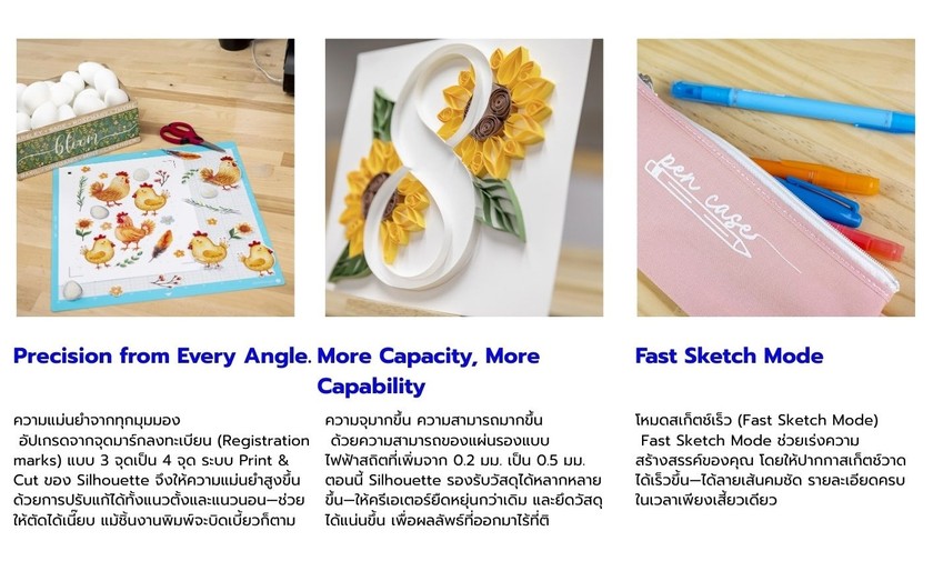 • ซอฟต์แวร์: รองรับ Silhouette Studio โปรแกรมออกแบบมาตรฐานสากลที่มีเครื่องมือครบครัน