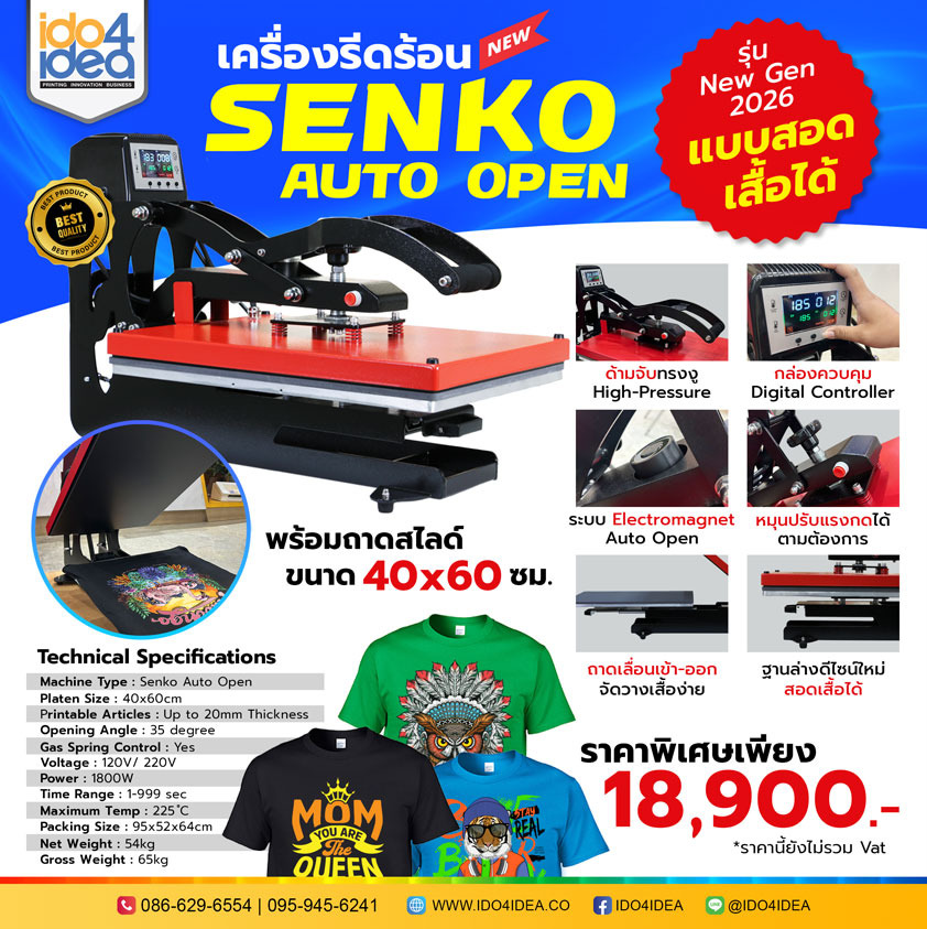 [PKHPSK-4060NG] เครื่องรีดร้อน SENKO Auto Open พร้อมถาดสไลด์ ขนาด 40x60 ซม. รุ่น New Gen 2026